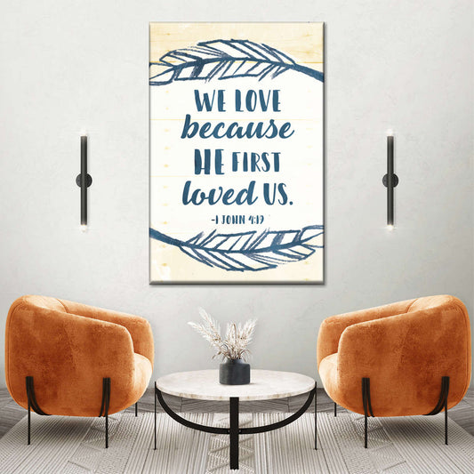 We Love Because He First Loved Us Wall Art Canvas - Christian Wall Hangings - Bible Verse Wall Art Canvas
