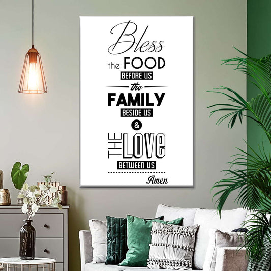 Bless The Food Typography Canvas Wall Art - Christian Wall Decor Art - Religious Wall Decor