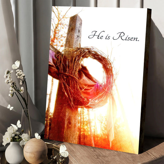 He Is Risen Cross Crown Canvas Wall Art - Easter Canvas Pictures - Christian Canvas Wall Decor