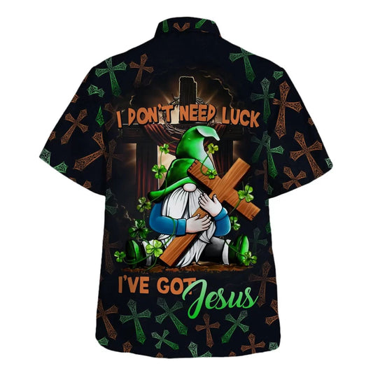 I Don't Need Luck I've Got Jesus Gnome Patrick Day Hawaiian Shirt - Christian Hawaiian Shirt - Religious Hawaiian Shirts