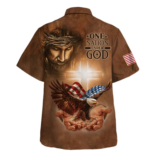 One Nation Under God Jesus Holy In Hand Eagle Hawaiian Shirts - Christian Hawaiian Shirt - Jesus Hawaiian Shirts