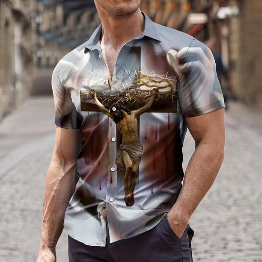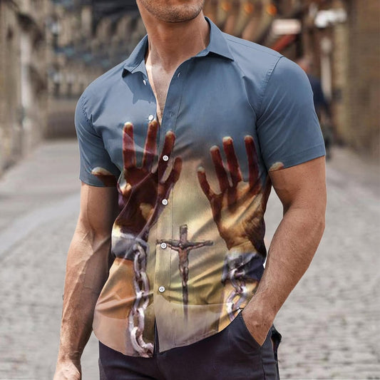 Jesus's Hand On The Cross Christian Hawaiian Shirt - Hawaiian Beach Shirts for Men Women