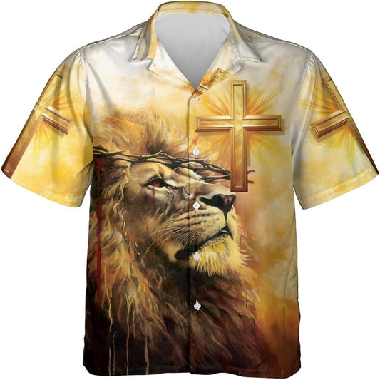 The Lion Cross Christian Hawaiian Shirt - Hawaiian Beach Shirts for Men Women
