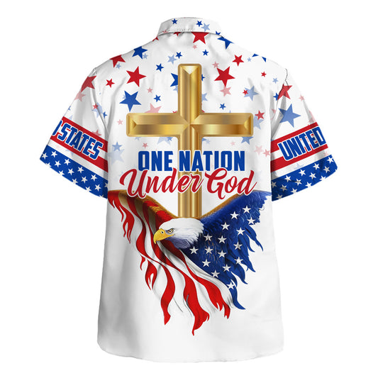 Cross Eagle One Nation Under God Hawaiian Shirt - Christian Hawaiian Shirt - Religious Hawaiian Shirts
