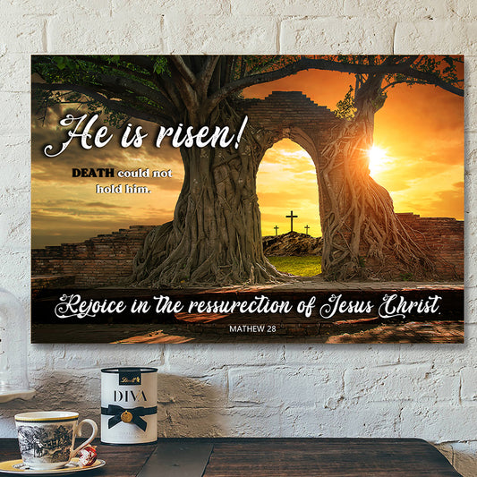 • He Is Risen Death Could Not Hold Him  - Bible Verse Canvas - Scripture Canvas Wall Art - Ciaocustom