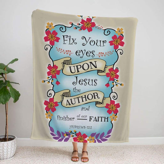 Hebrews 122 Fix Your Eyes Upon Jesus Fleece Blanket - Christian Blanket - Bible Verse Blanket