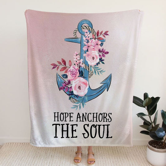 Hebrews 619 Hope Anchors The Soul Floral Fleece Blanket - Christian Blanket - Bible Verse Blanket