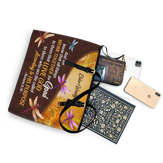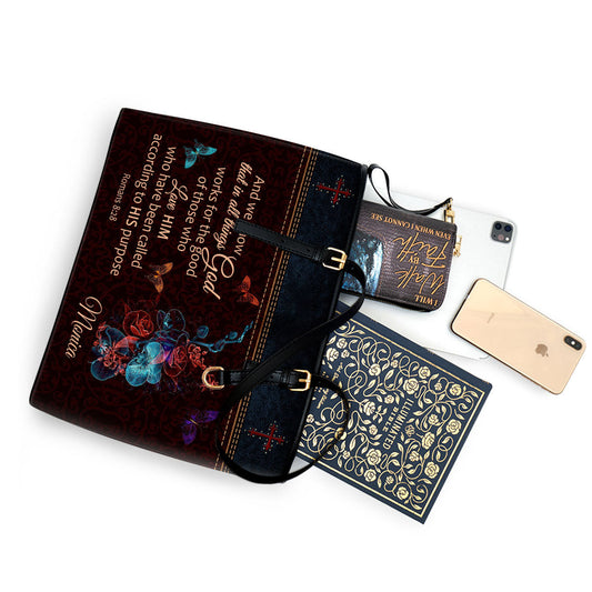 And We Know That All Things Personalized Tote Bag Leather Bible Bag Gift For Christian Friends - Christian Gifts For Women