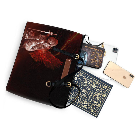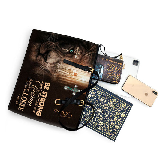 Be Strong And Let Your Heart Take Courage Personalized Large Leather Tote Bag - Christian Gifts For Women