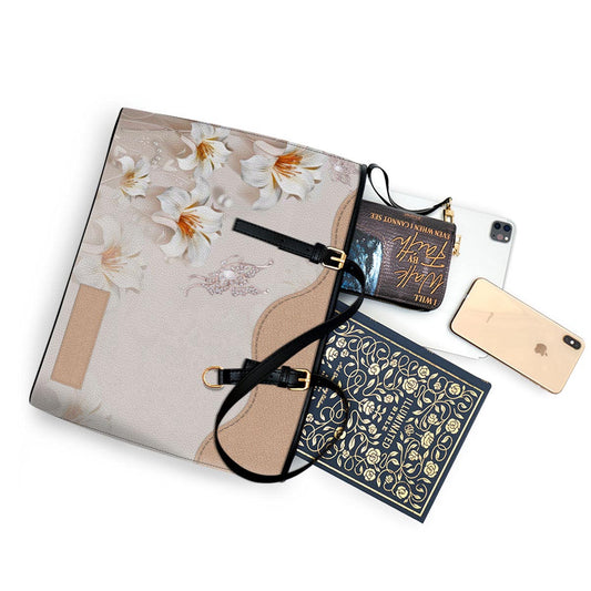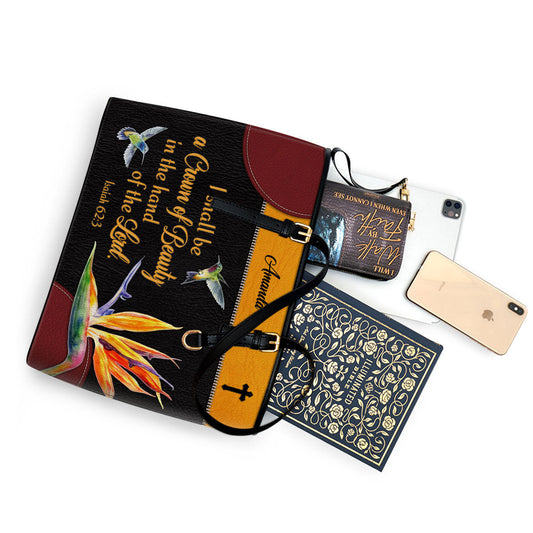 You Shall Be A Crown Of Beauty In The Hand Of The Lord Personalized Large Pu Leather Tote Bag For Women - Mom Gifts For Mothers Day