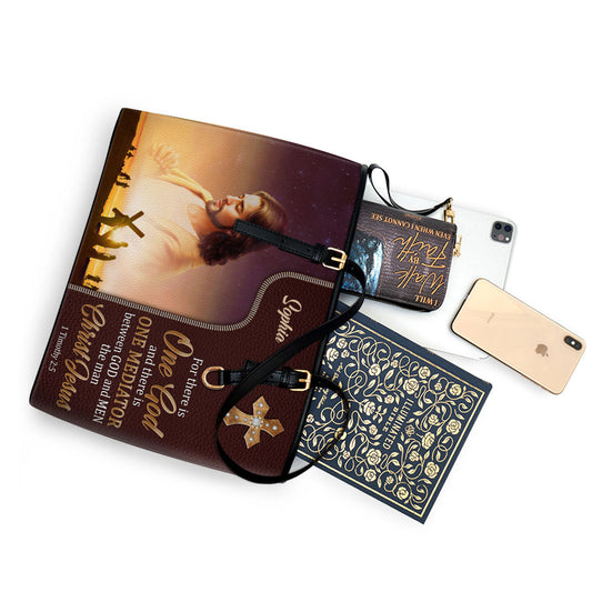 There Is One Mediator Between God And Men The Man Christ Jesus Personalized Large Pu Leather Tote Bag For Women - Mom Gifts For Mothers Day
