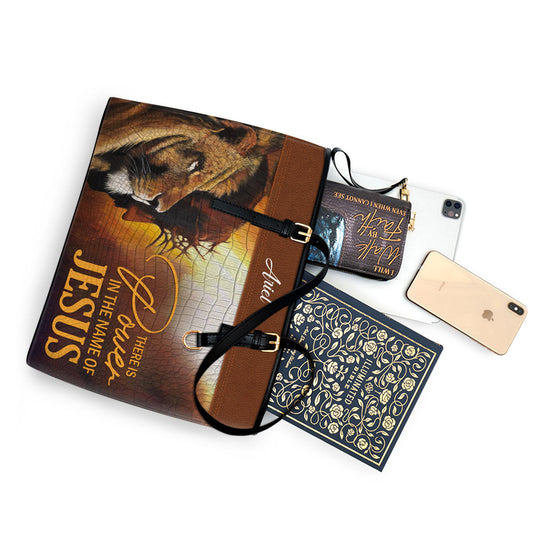 There Is Power In The Name Of Jesus Personalized Lion Large Pu Leather Tote Bag For Women - Mom Gifts For Mothers Day