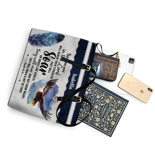 They Will Soar On Wings Like Eagles Personalized Large Pu Leather Tote Bag For Women - Mom Gifts For Mothers Day