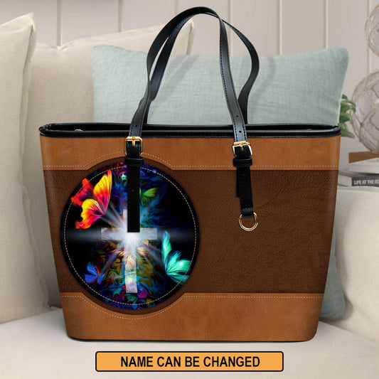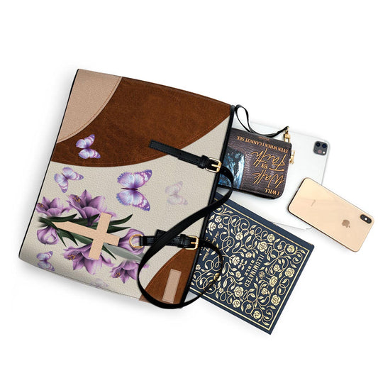 Those Who Walk With God Always Reach Their Destination Personalized Cross Large Pu Leather Tote Bag For Women - Mom Gifts For Mothers Day