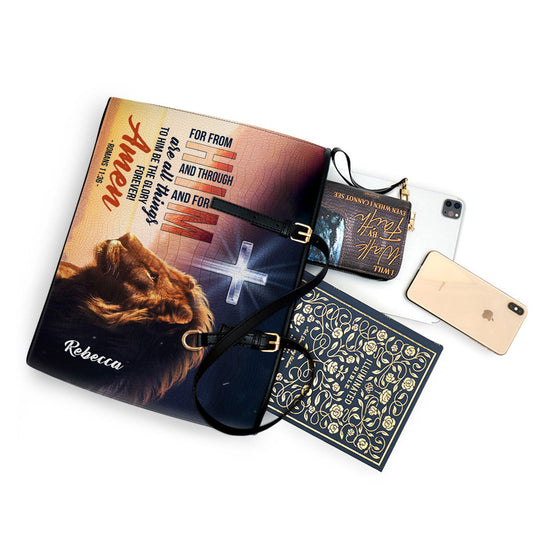To Him Be The Glory Forever Beautiful Personalized Large Pu Leather Tote Bag For Women - Mom Gifts For Mothers Day