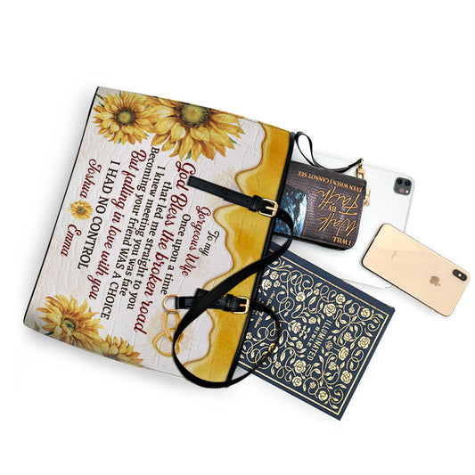 To My Gorgeous Wife Sweet Personalized Large Pu Leather Tote Bag For Women - Mom Gifts For Mothers Day