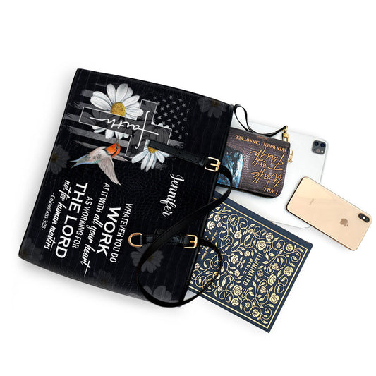 Whatever You Do Work At It With All Your Heart Beautiful Personalized Large Pu Leather Tote Bag For Women - Mom Gifts For Mothers Day