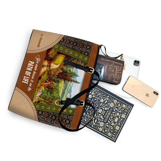 You Make Known To Me The Path Of Life Personalized Large Pu Leather Tote Bag For Women - Mom Gifts For Mothers Day