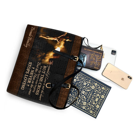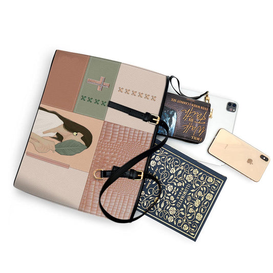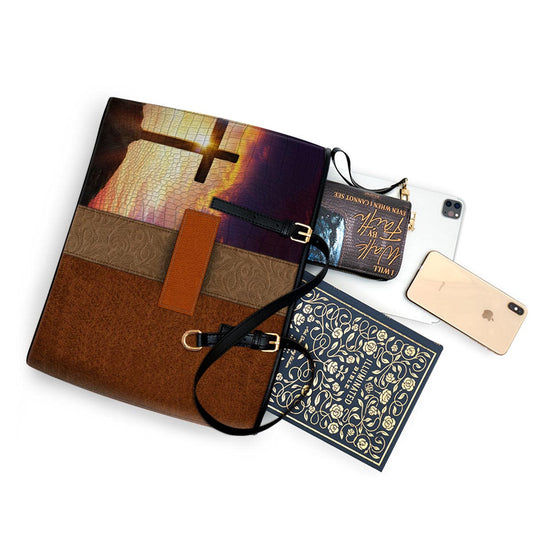 The Man On The Cross Never Stops Loving Beautiful Personalized Large Pu Leather Tote Bag For Women - Mom Gifts For Mothers Day