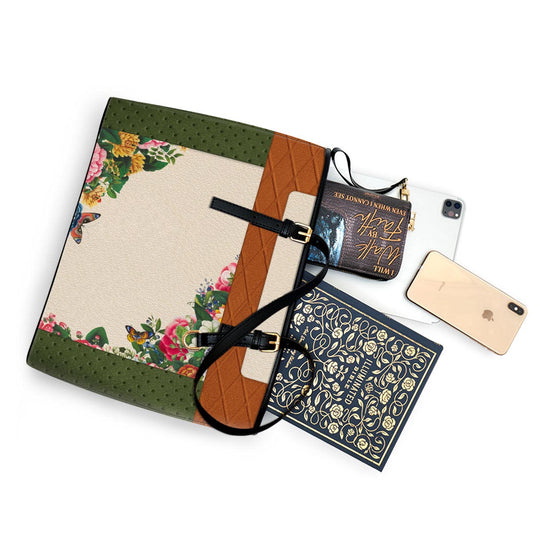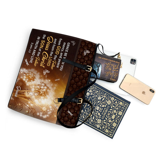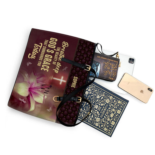 The Beauty Of God‘s Grace That Surrounds You Today Personalized Large Pu Leather Tote Bag For Women - Mom Gifts For Mothers Day