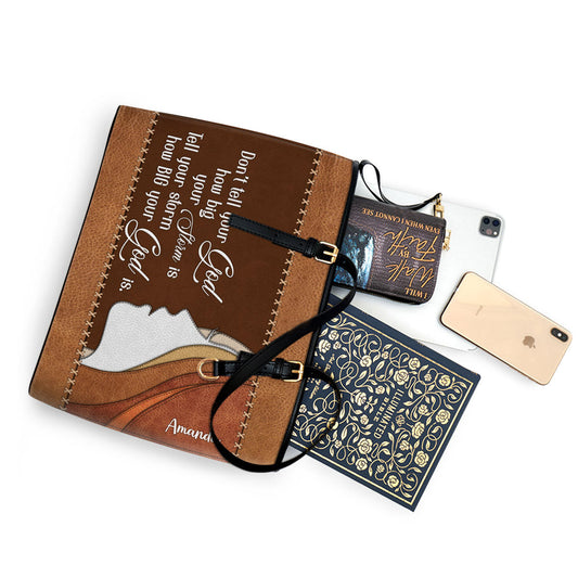 Tell Your Storm How Big Your God Is Personalized Pu Leather Tote Bag For Women - Mom Gifts For Mothers Day