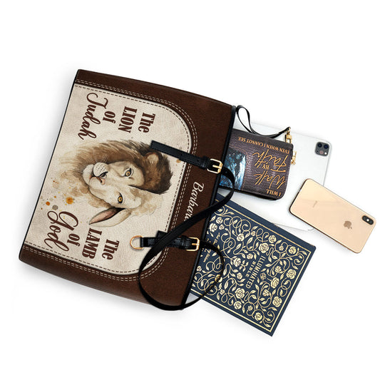 The Lion Of Judah The Lamb Of God Personalized Large Pu Leather Tote Bag For Women - Mom Gifts For Mothers Day