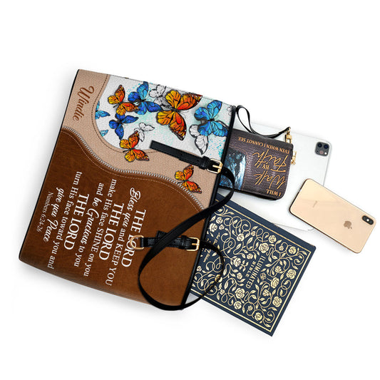 The Lord Bless You And Keep You Personalized Large Pu Leather Tote Bag For Women - Mom Gifts For Mothers Day
