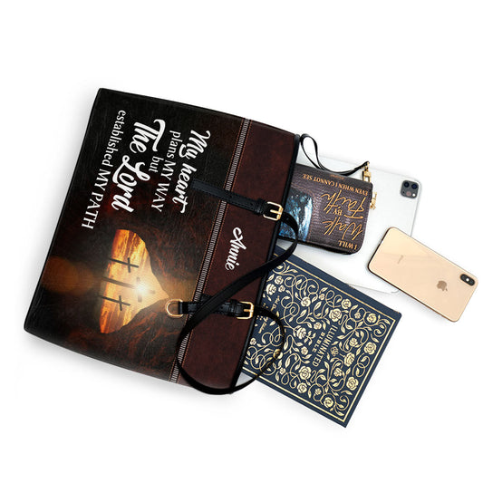The Lord Established My Path Personalized Pu Leather Tote Bag For Women - Mom Gifts For Mothers Day