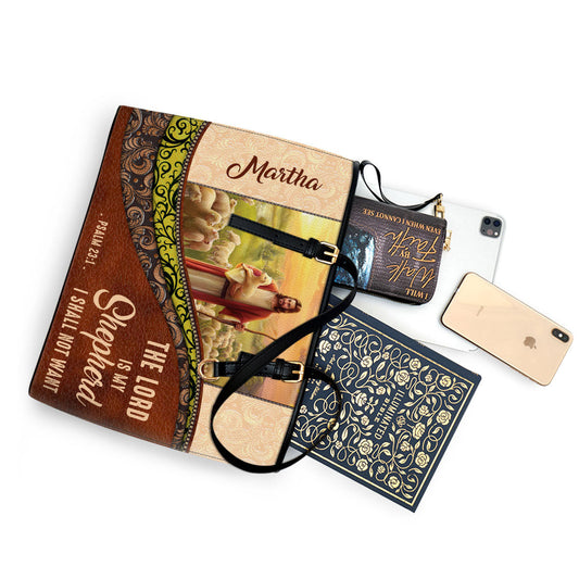 The Lord Is My Shepherd I Shall Not Want Personalized Large Pu Leather Tote Bag For Women - Mom Gifts For Mothers Day
