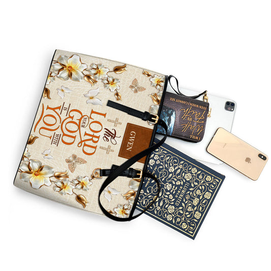 The Lord Your God Is With You Personalized Large Pu Leather Tote Bag For Women - Mom Gifts For Mothers Day