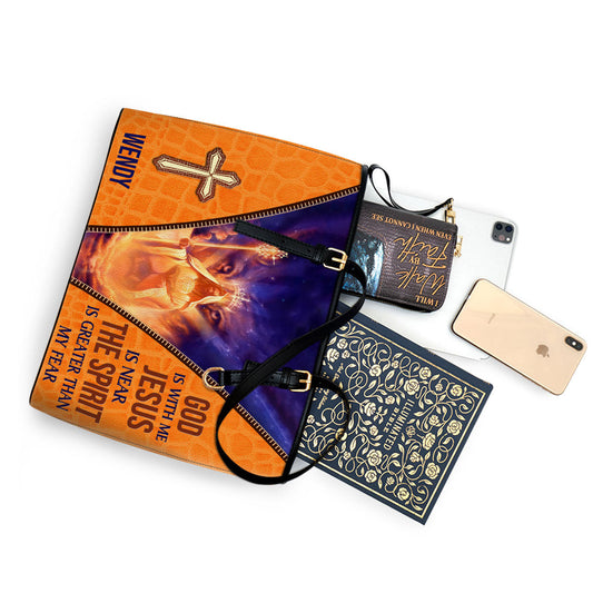 The Spirit Is Greater Than My Fear Lovely Personalized Large Pu Leather Tote Bag For Women - Mom Gifts For Mothers Day