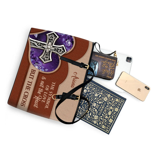 The Symbol Of Love Is The Cross Personalized Large Pu Leather Tote Bag For Women - Mom Gifts For Mothers Day