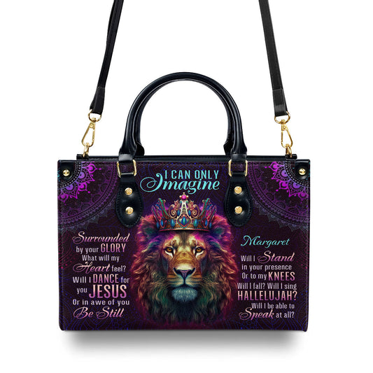 Lion I Can Only Imagine Personalized Leather Handbag With Zipper - Inspirational Gift Christian Ladies