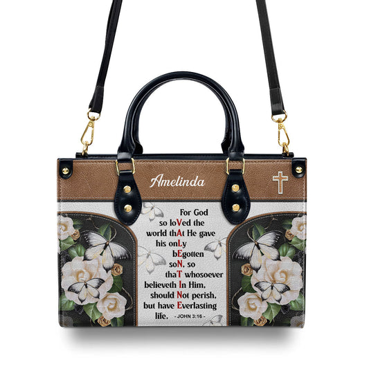 Personalized Leather Handbag With Handle For God So Loved The World Christian Valentine Gifts For Women Of God
