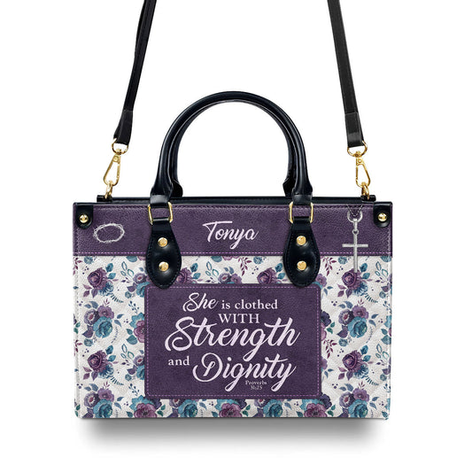 Proverbs 3125 Personalized Leather Handbag With Handle She Is Clothed With Strength and Dignity Religious Gift For Female Pastors