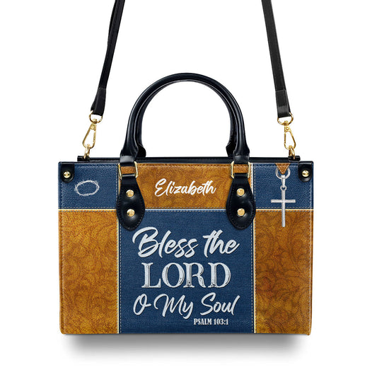Psalm 1031 Bless The Lord O My Soul Personalized Leather Handbag With Handle Christ Gifts For Women Of God