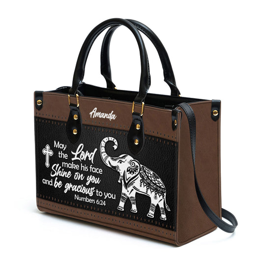 May The Lord Make His Face Shine On You Leather Bag - Custom Name Elephant Leather Handbag - Christian Gifts For Women
