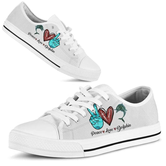Peace Love Dolphin Sign Low Top Shoes, Animal Print Canvas Shoes, Print On Canvas Shoes