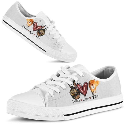 Peace Love Fox Sign Low Top Shoes, Animal Print Canvas Shoes, Print On Canvas Shoes