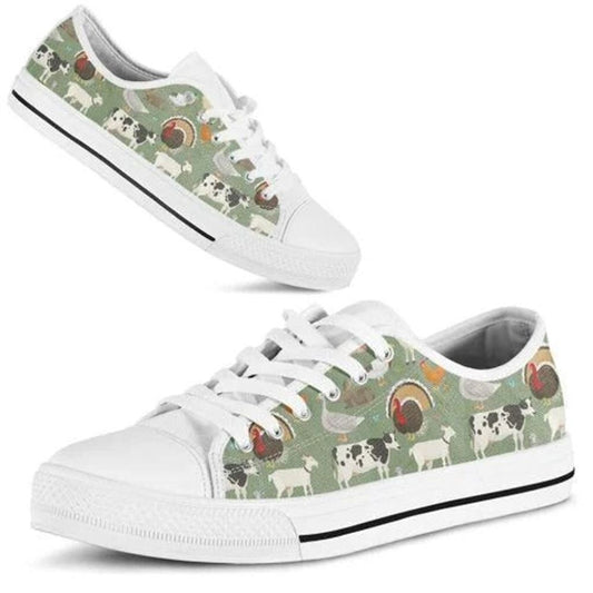 Peaceful Farm Cow Low Top Shoes, Animal Print Canvas Shoes, Print On Canvas Shoes