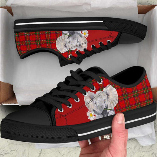 Red Plaid Elephant Canvas Print Low Top Shoes, Animal Print Canvas Shoes, Print On Canvas Shoes