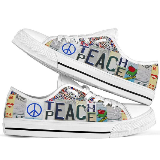 • Teacher Peace License Plates Low Top Shoes, Teacher Shoes, Low Top Sneakers