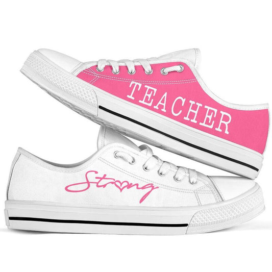 • Teacher Strong Pink White Shoes, Teacher Shoes, Low Top Sneakers