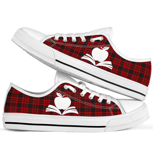 • Teacher Plaid Christmas Low Top Shoes, Teacher Shoes, Low Top Sneakers