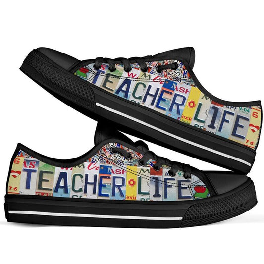 Teacher Life License Plates Low Top Shoes, Teacher Shoes, Low Top Sneakers