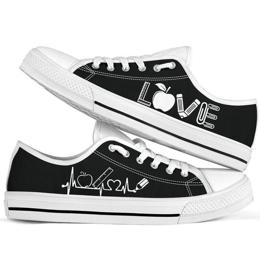 Teacher Love Black Low Top Shoes, Teacher Shoes, Low Top Sneakers