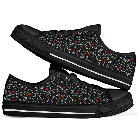 Teacher Pattern Low Top Black Shoes, Teacher Shoes, Low Top Sneakers