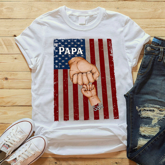 • Personalized Papa T shirt - Custom Name Dad & Kids Hands Flag Shirt - 4th of July Papa Shirt - Father Day Shirt - Ciaocustom
