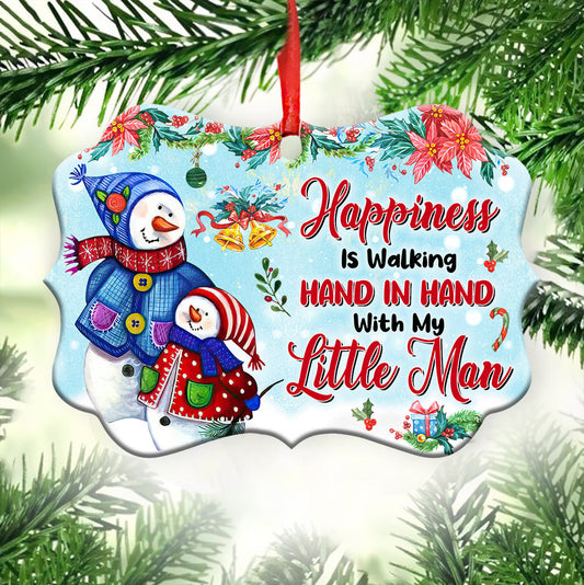 Family Mas Snowman Happiness Is Walking Hand In Hand With My Little Man Metal Ornament - Christmas Ornament - Christmas Gift