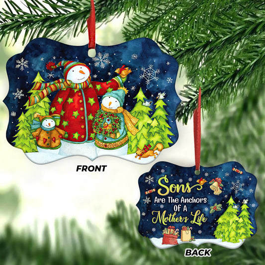Family Mas Snowman Sons Are The Anchors Of A Mothers Life Metal Ornament - Christmas Ornament - Christmas Gift